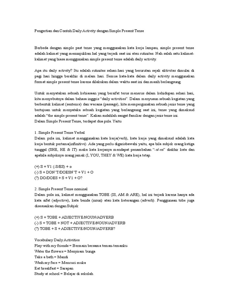 Contoh daily activity kegiatan sehari hari menggunakan simple present tense sebagai seorang pelajar mahasiswa anak kuliahan karyawan dan saat .